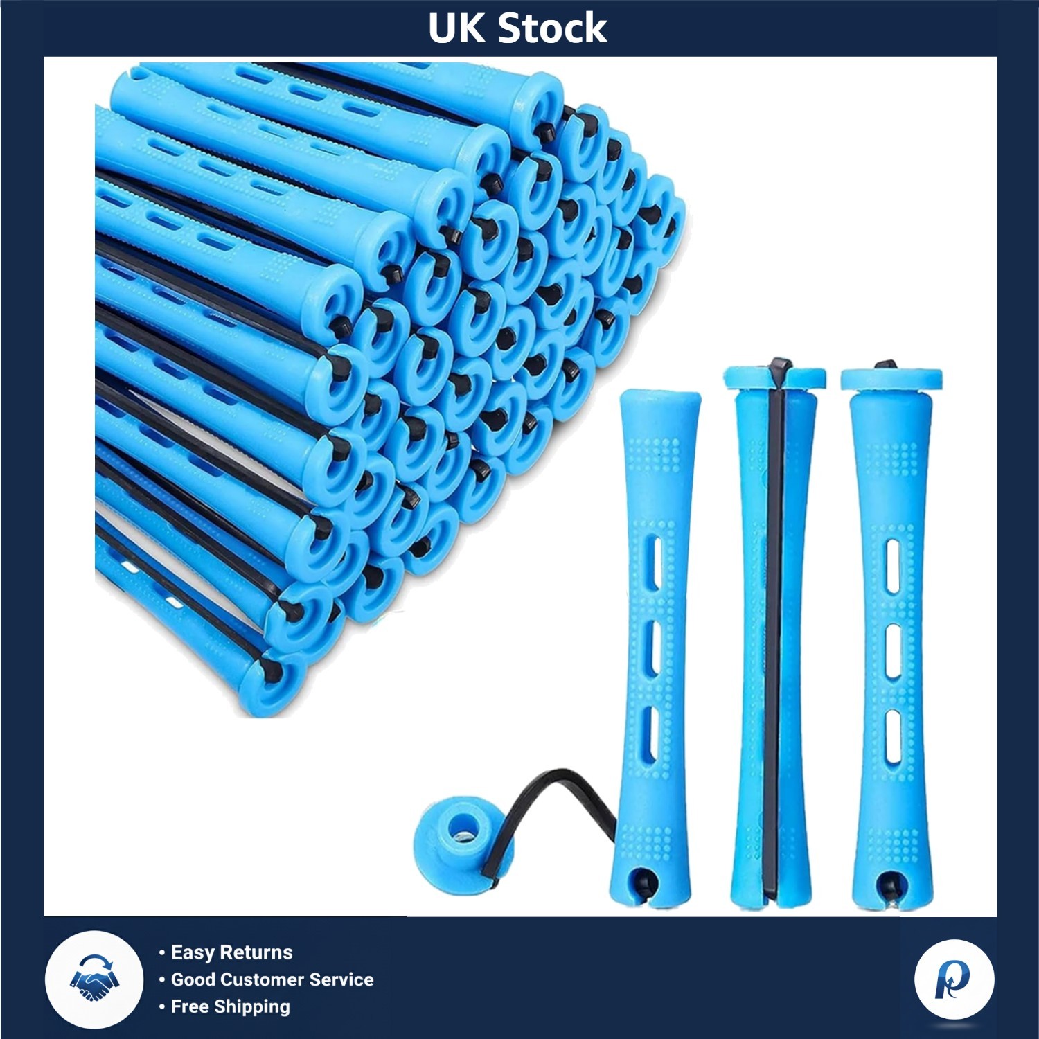 60 Small Size Hair Curlers, 0.35 Inch Rollers, Blue Perm Rods, Home Perm Kits f