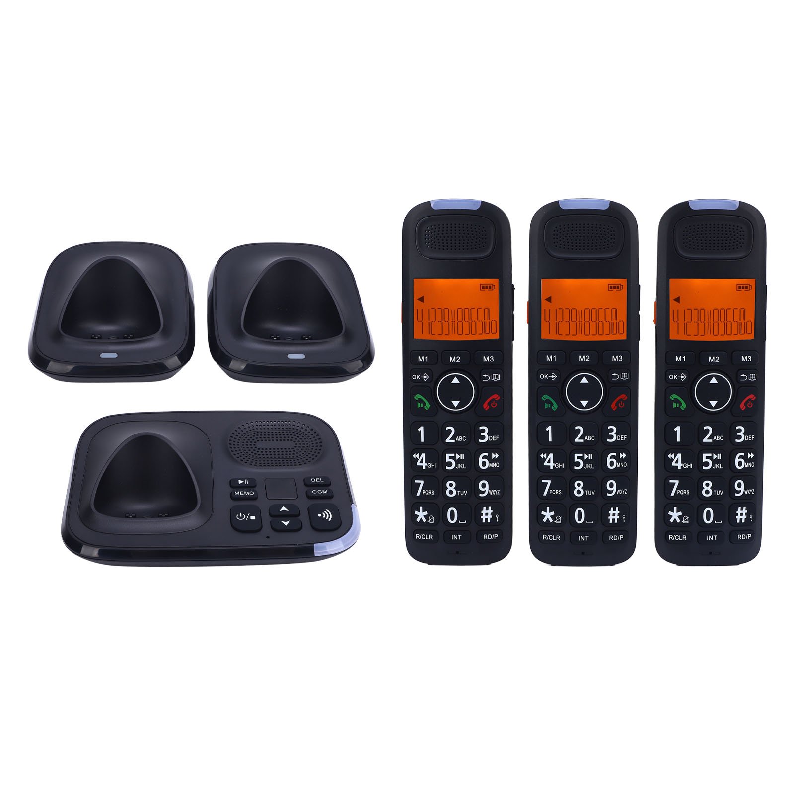 US Plug 3 Handset Expandable Cordless Phone For Home With Answering Machine WL