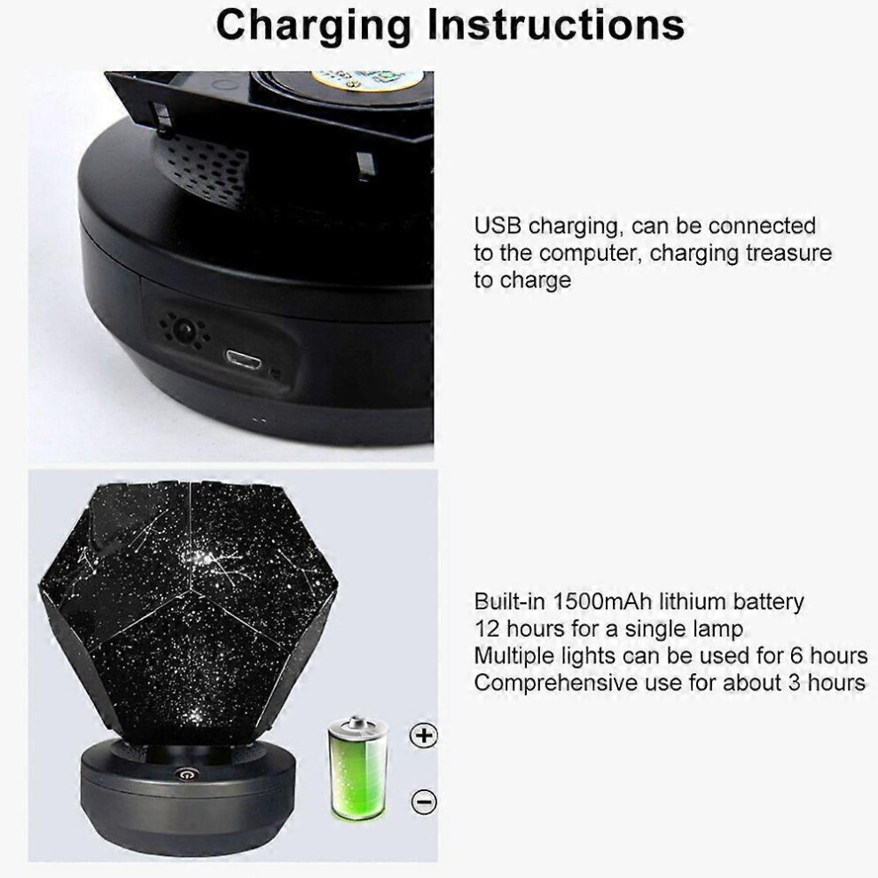 Brightness Adjustment Night Light, Projection Films With Sothing Sounds, Home Planetarium Offering 360 Degree Rotation And USB Rechargeable Design, Wh