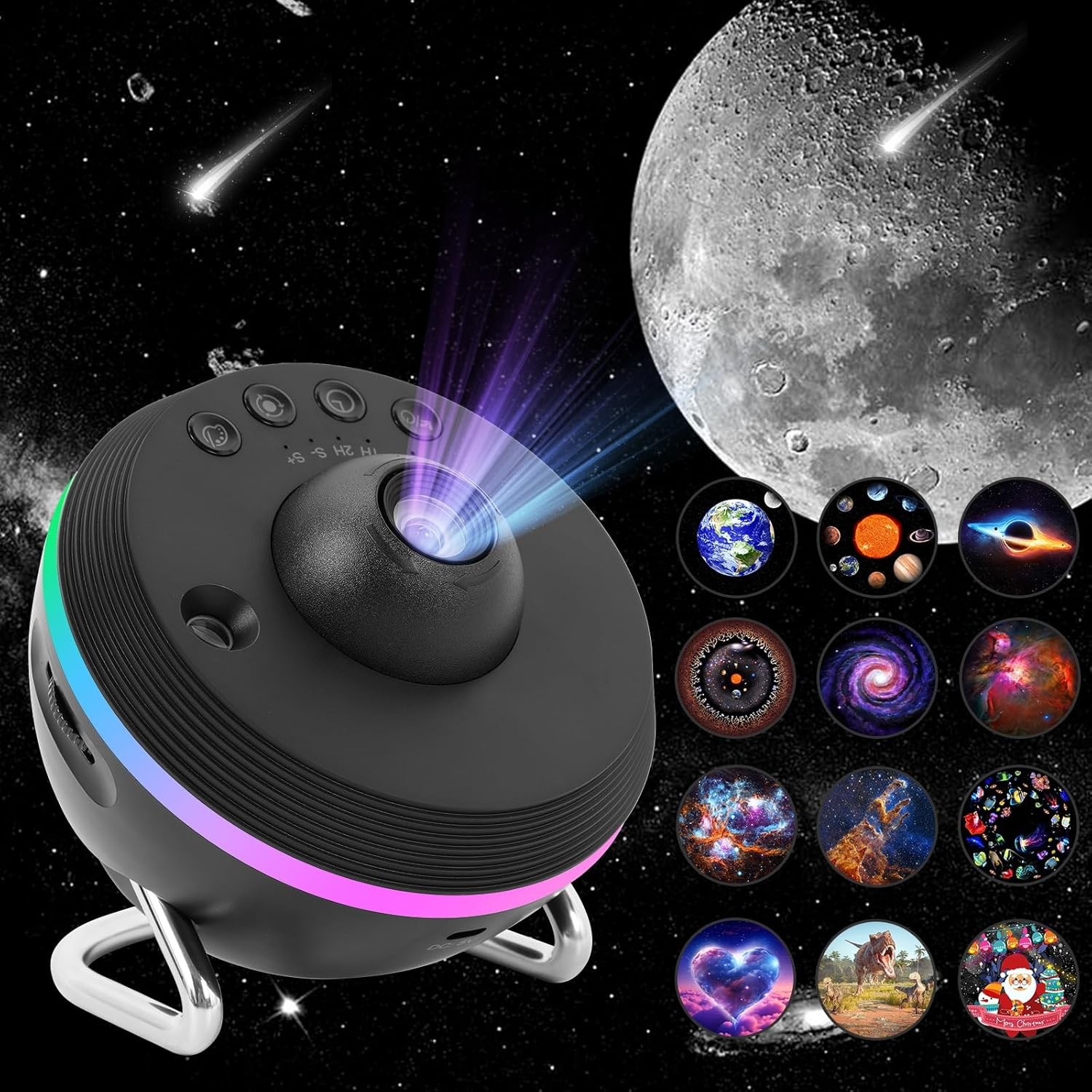 Motionful CosmoGlow Moon Projector Galaxy Pro 13-in-1 Planetarium Star Projector with 12 Film Discs, 360° Nebula Night Light, Celestial Projection Lamp for Bedroom, Home Décor