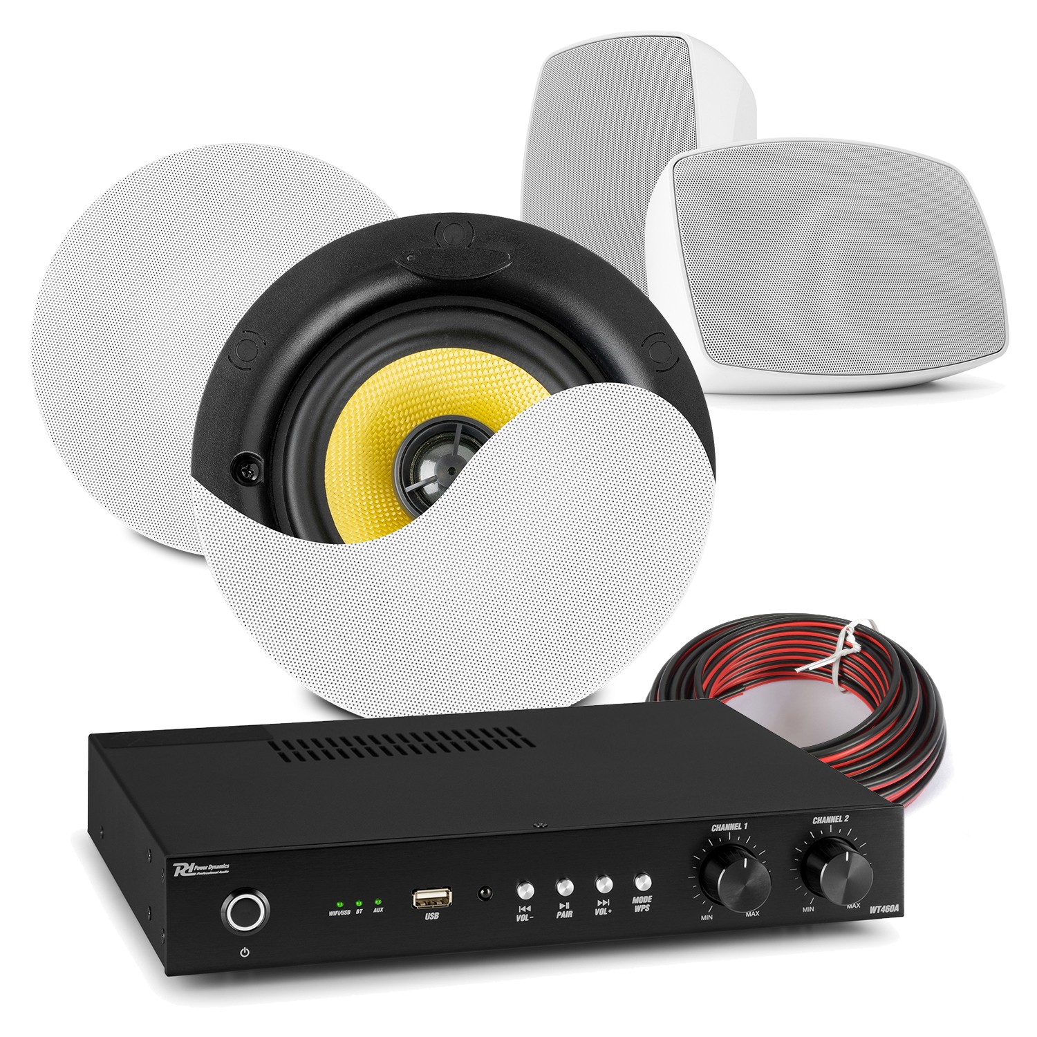 PowerLine A100W Home Bluetooth Ceiling Speaker System with Wall Amp - 4x KVCS5
