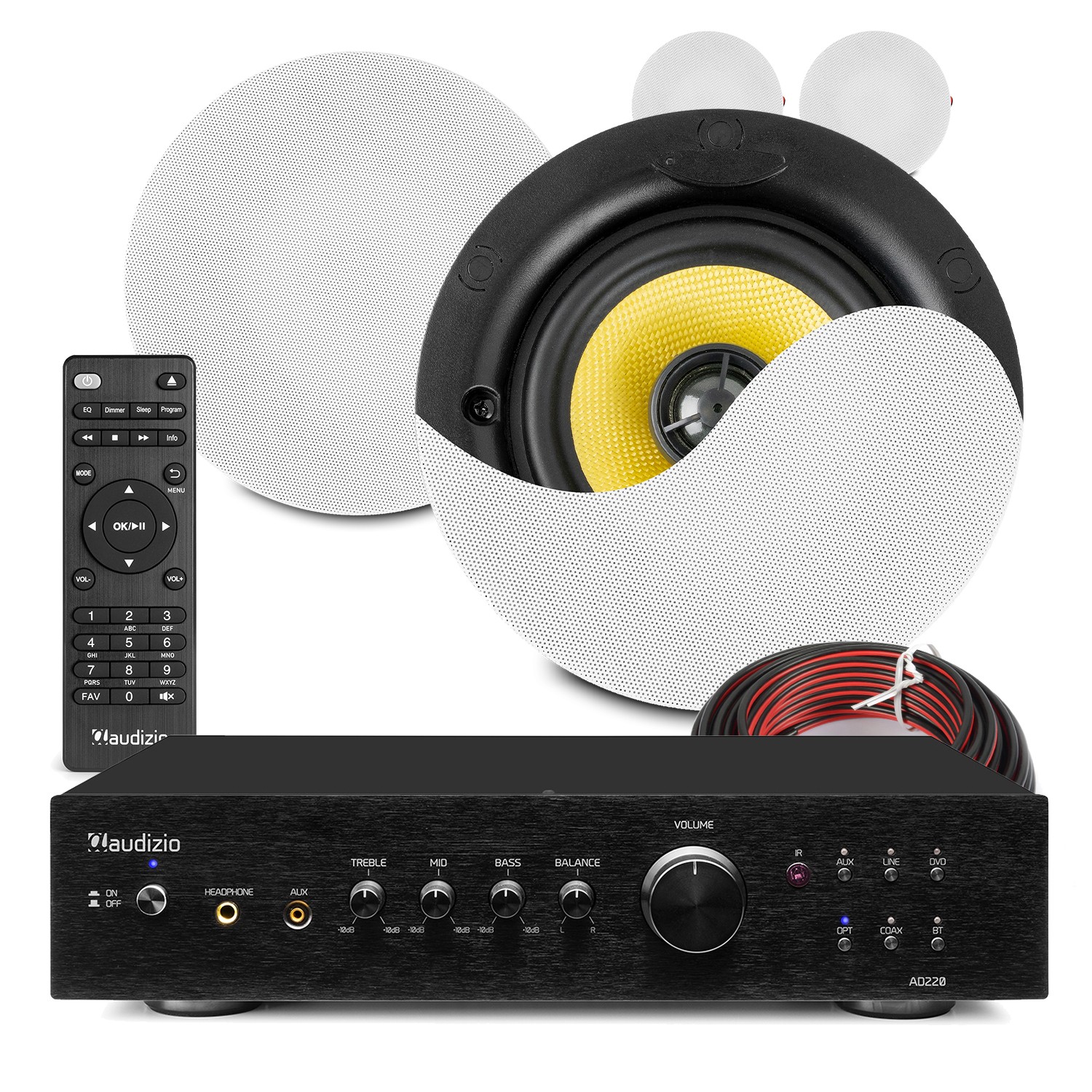 PD Home Audio Ceiling Speaker System with AD220A Bluetooth Amplifier - 2x KVCS5