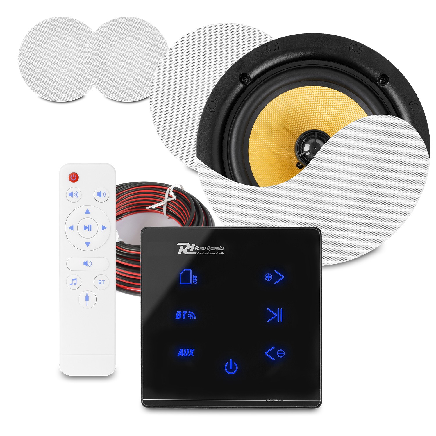 PowerLine A100B Home Bluetooth Ceiling Speaker System with Wall Amp - 4x KVCS8