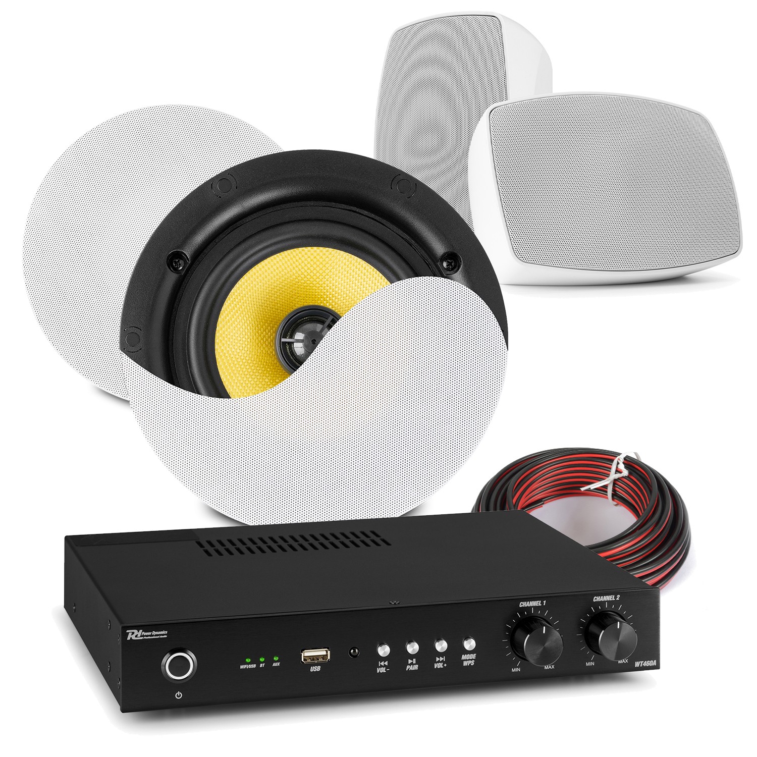 PowerLine A100W Home Bluetooth Ceiling Speaker System with Wall Amp - 4x KVCS6
