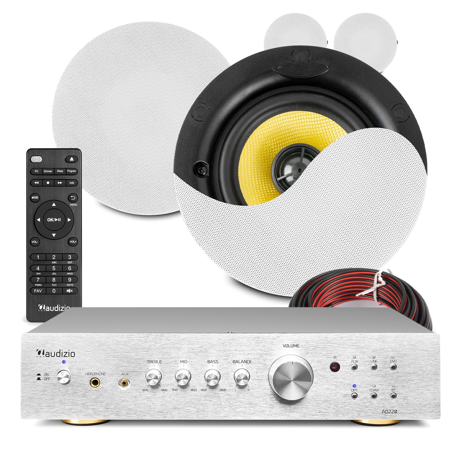 PD Home Audio Ceiling Speaker System with AD220B Bluetooth Amplifier - 4x KVCS5