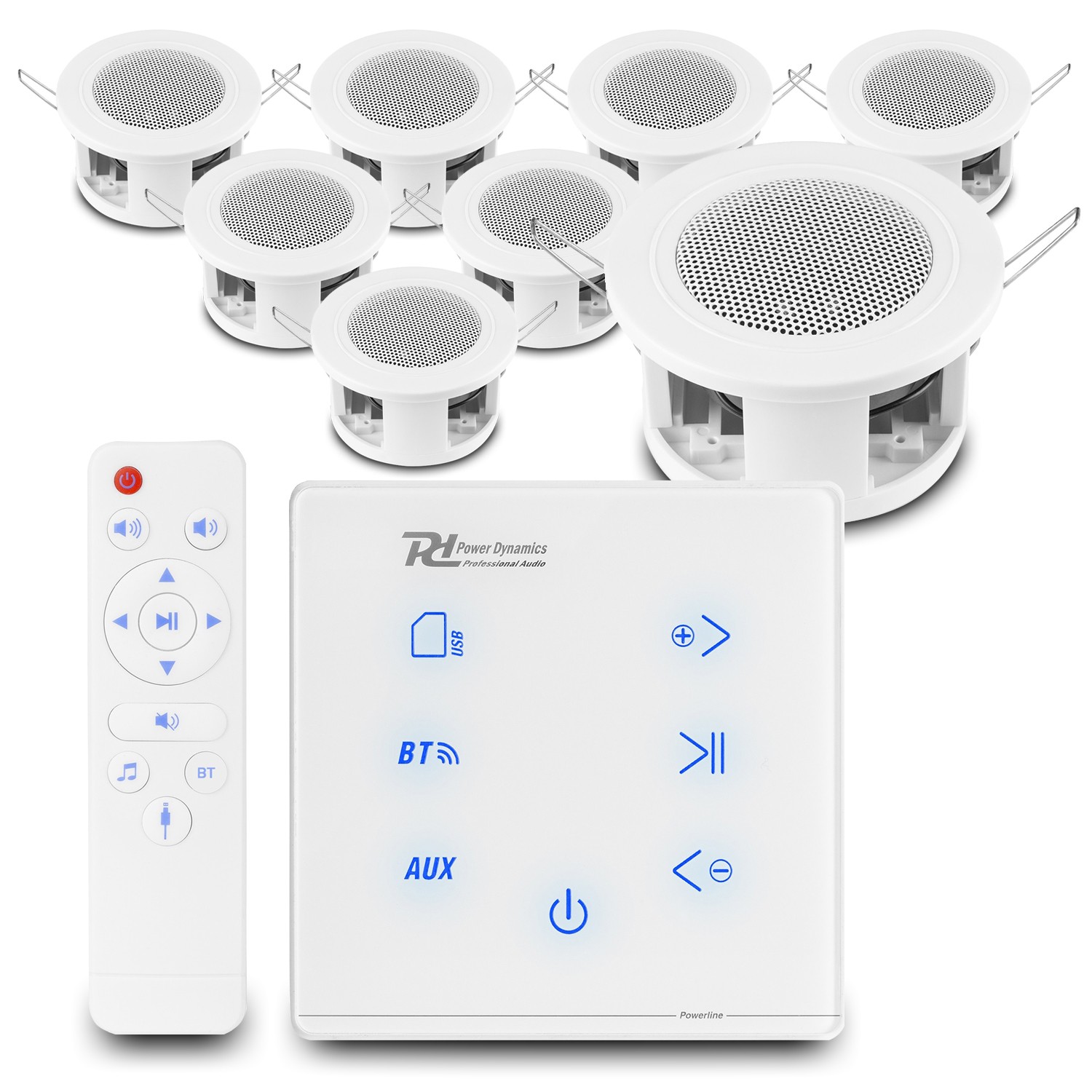 Home Bluetooth Ceiling Speaker System with A100B Wall Amplifier and 8x 3" CSBA3L