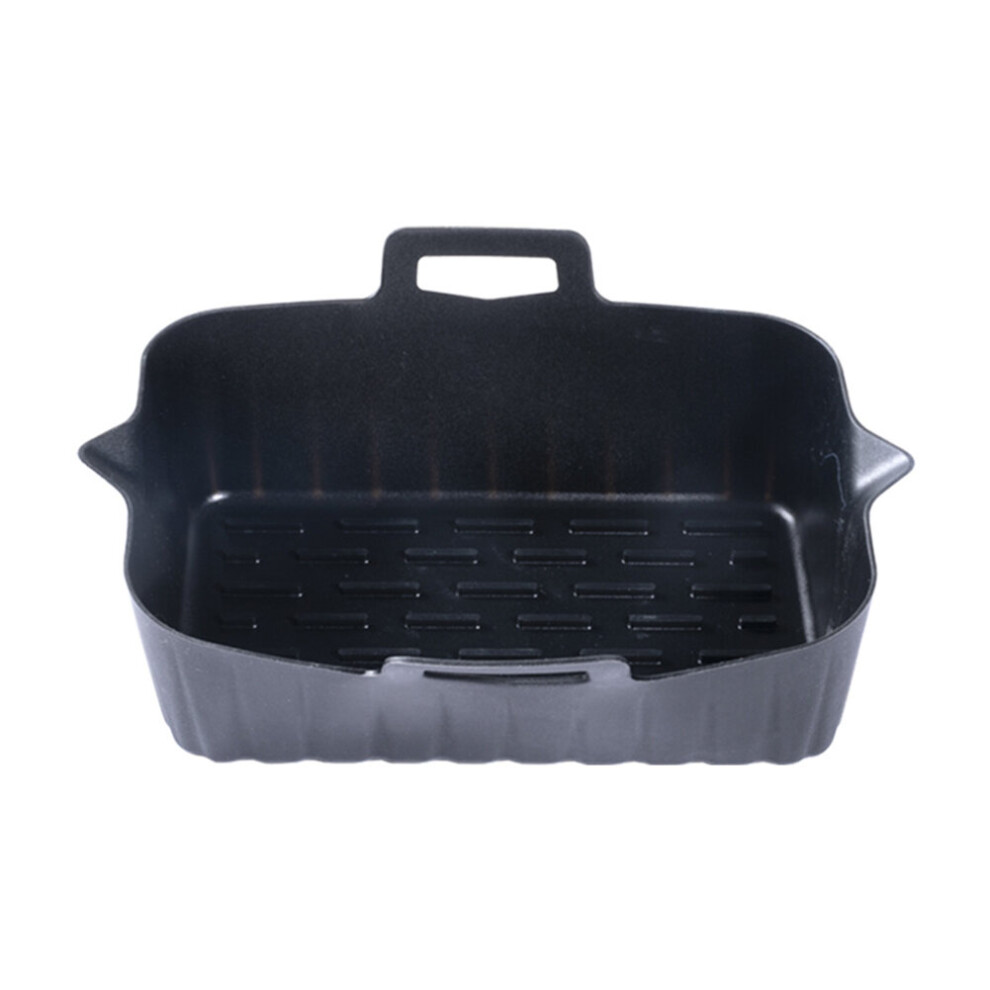 (Black) Reusable Silicone Air Fryers Basket Supplies Oven Baking Tray Heat-insulation Non-stick for Home Kitchen Oven Steamer Cooker