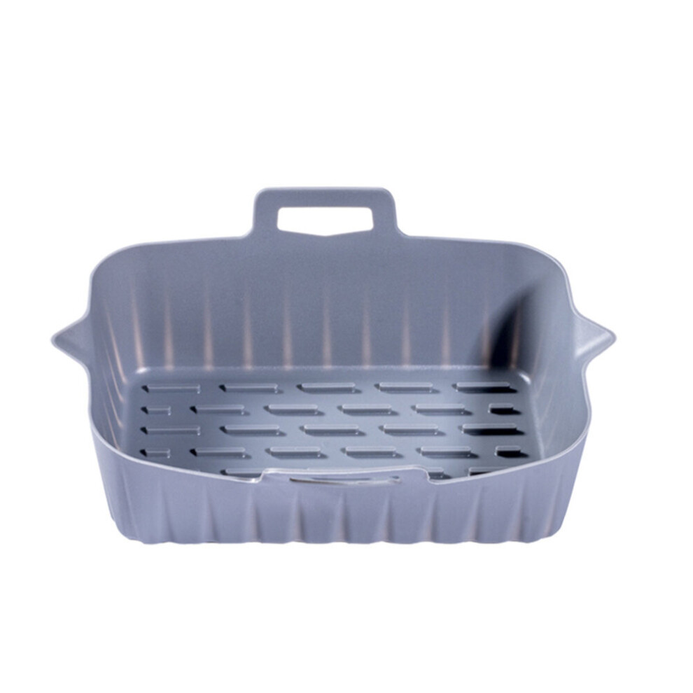 (Grey) Reusable Silicone Air Fryers Basket Supplies Oven Baking Tray Heat-insulation Non-stick for Home Kitchen Oven Steamer Cooker