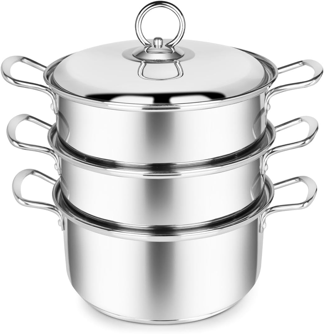 Penguin Home 3 Tier Stainless Steel Food Steamer Pan Set, Induction Safe Stainl