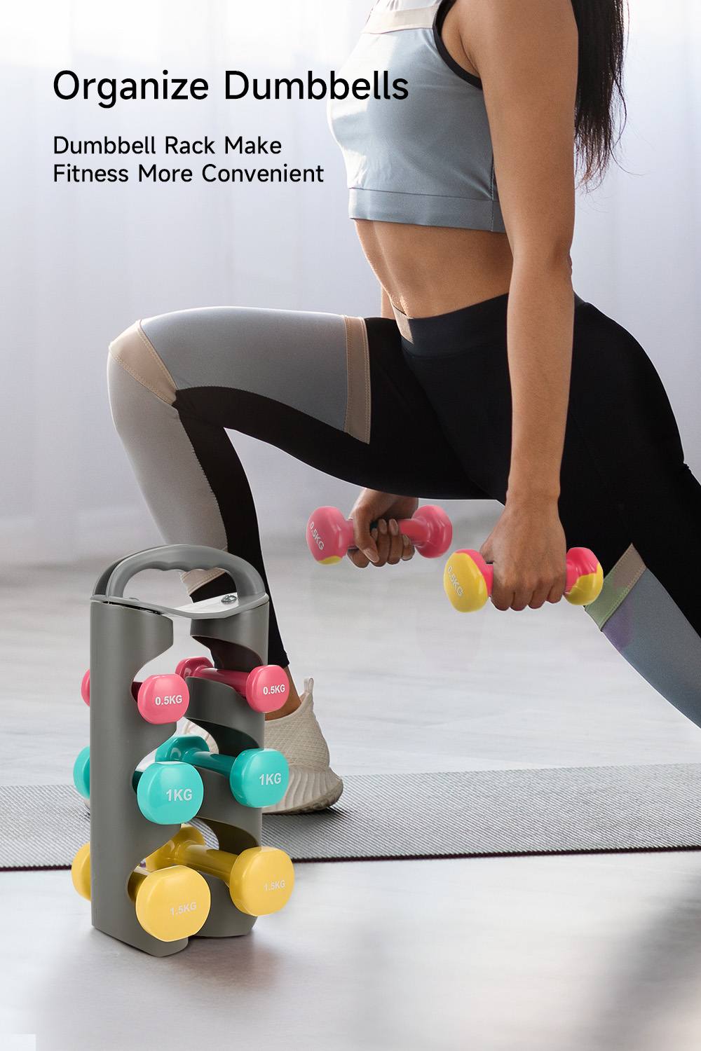 Hex Dumbbell Set with Rack, 6 Weights, Pink Purple Green, 31x9x28cm, Home Gym