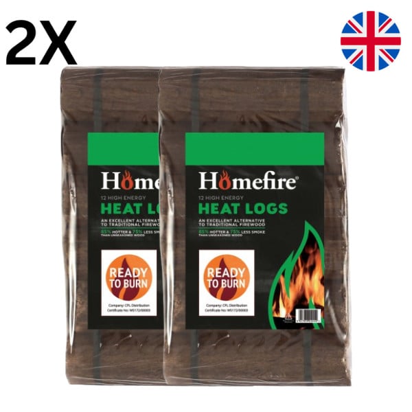 2 x Homefire Heat Logs - Pack Of 12 (24 Total)