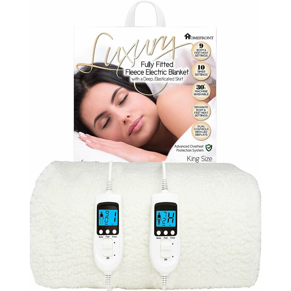 Homefront Electric Blanket King Size Bed Dual Control 152x203x40cm, Fleece Fitted Heated Mattress Cover Underblanket with Skirt, Overheat Protection, Body and Feet, Fast Heat, Machine Washable