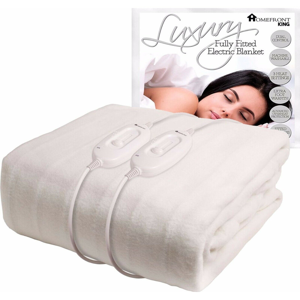 Homefront Electric Blanket King Size Dual Control 152x203 cm Premium Fully Fitted Heated Mattress Cover Underblanket & Double Size, Fabric, White
