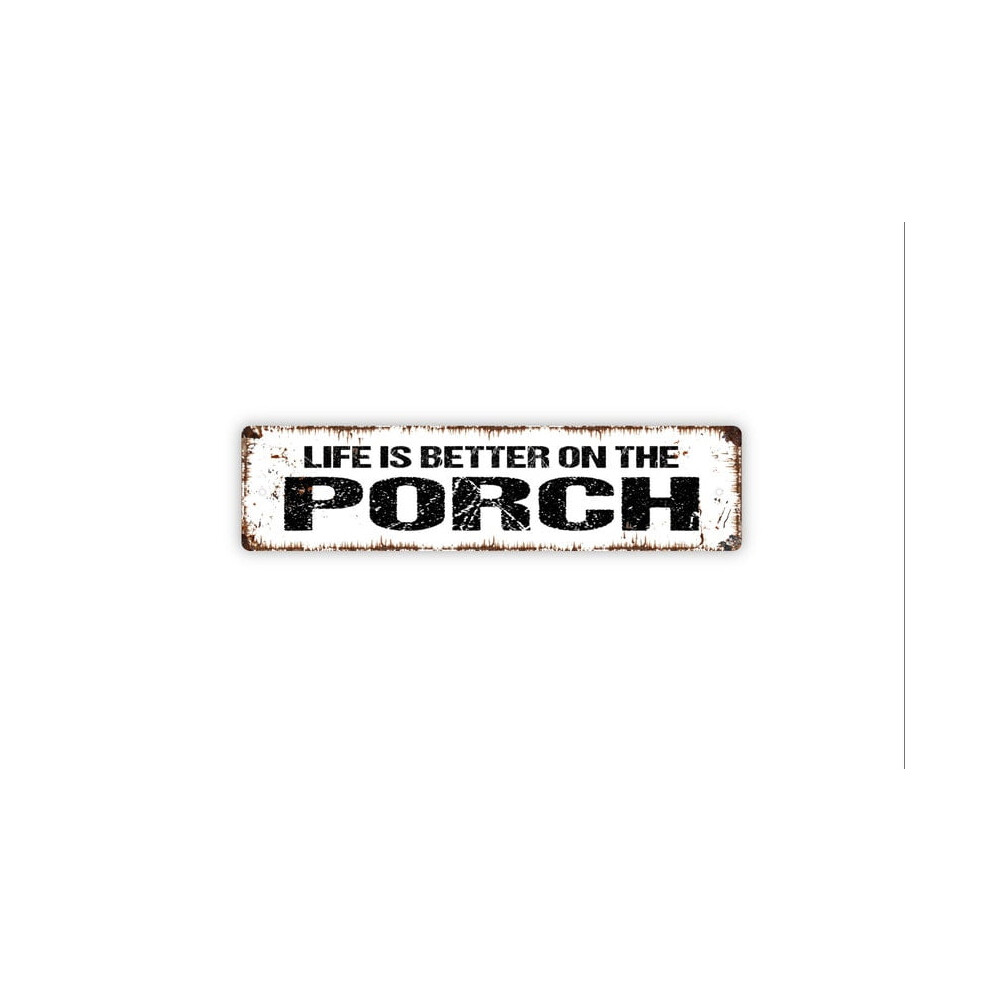 Life Is Better On The Porch Sign Rustic Street Metal Sign or Door Name Plate Plaque Size: 4 x 16 Inch