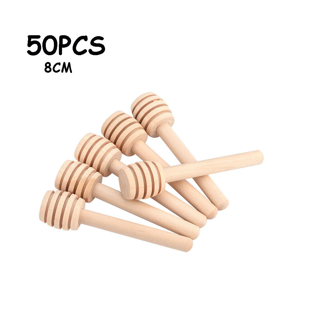 50PCS 8CM Wood Honey Dipper Sticks Honey Stirrer Dispensing Wand For Weddin OU