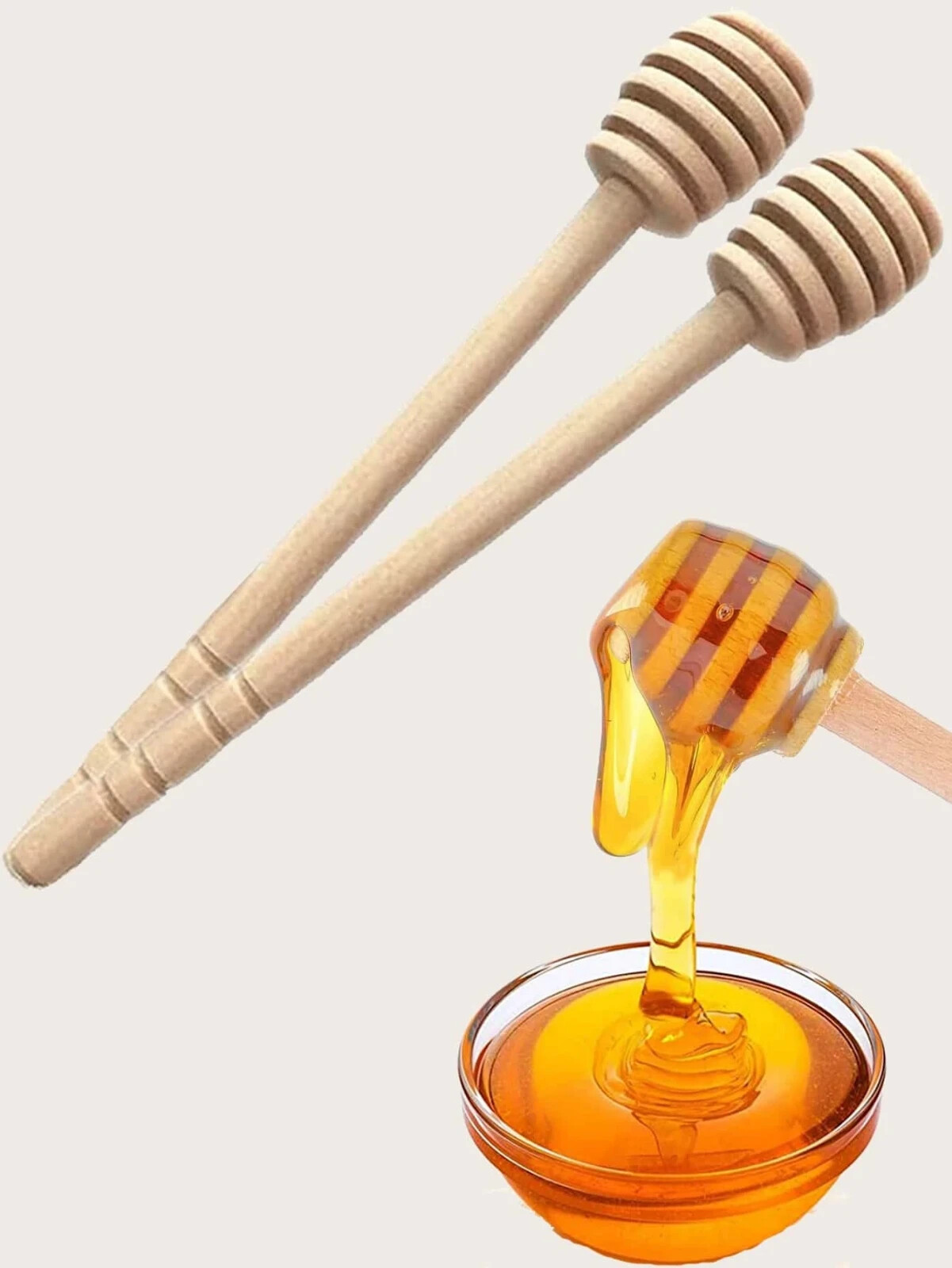 2pcs Honey Dipper Drizzler 16cm Spoon Syrup Stick Wood Wooden Pot Server Dripper