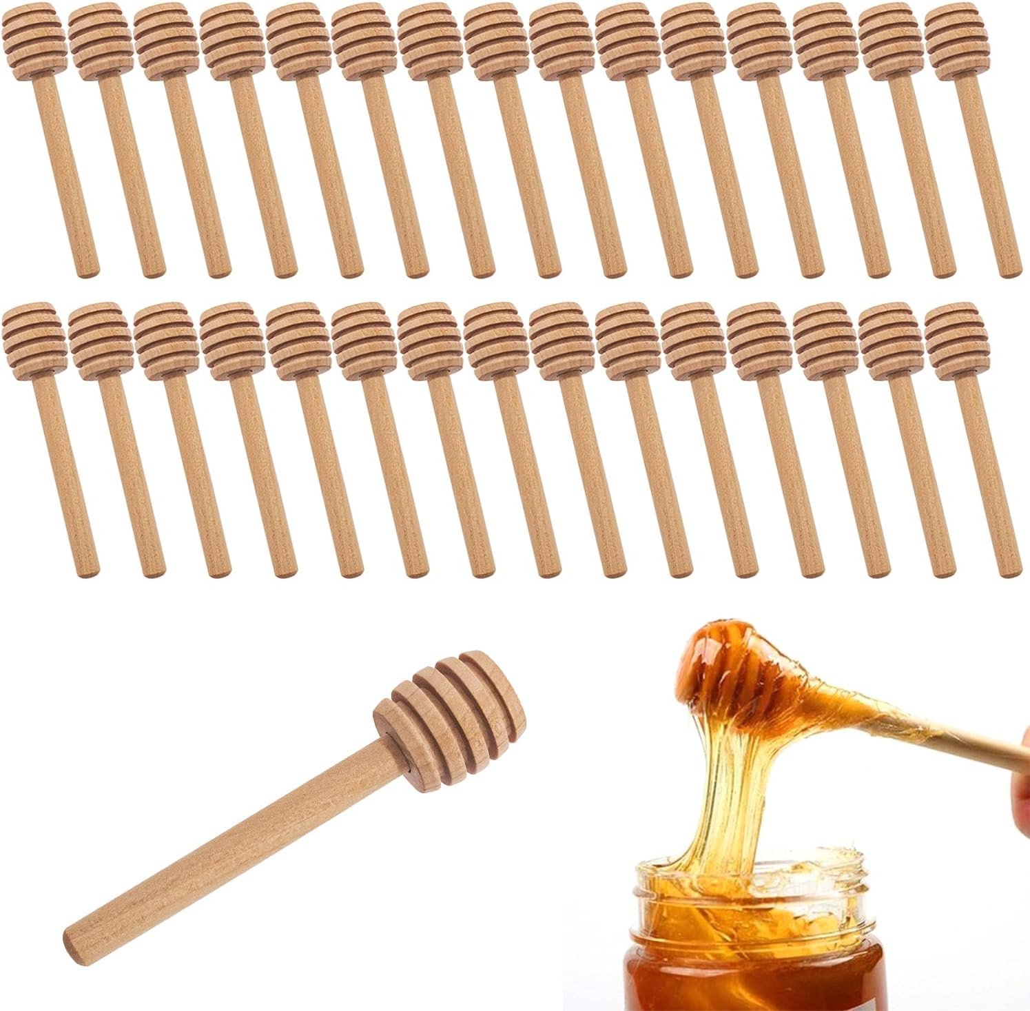 Wooden Honey Dipper Sticks, 8Cm, 50-Piece Set, Kitchen Utensils for Jam and Hone
