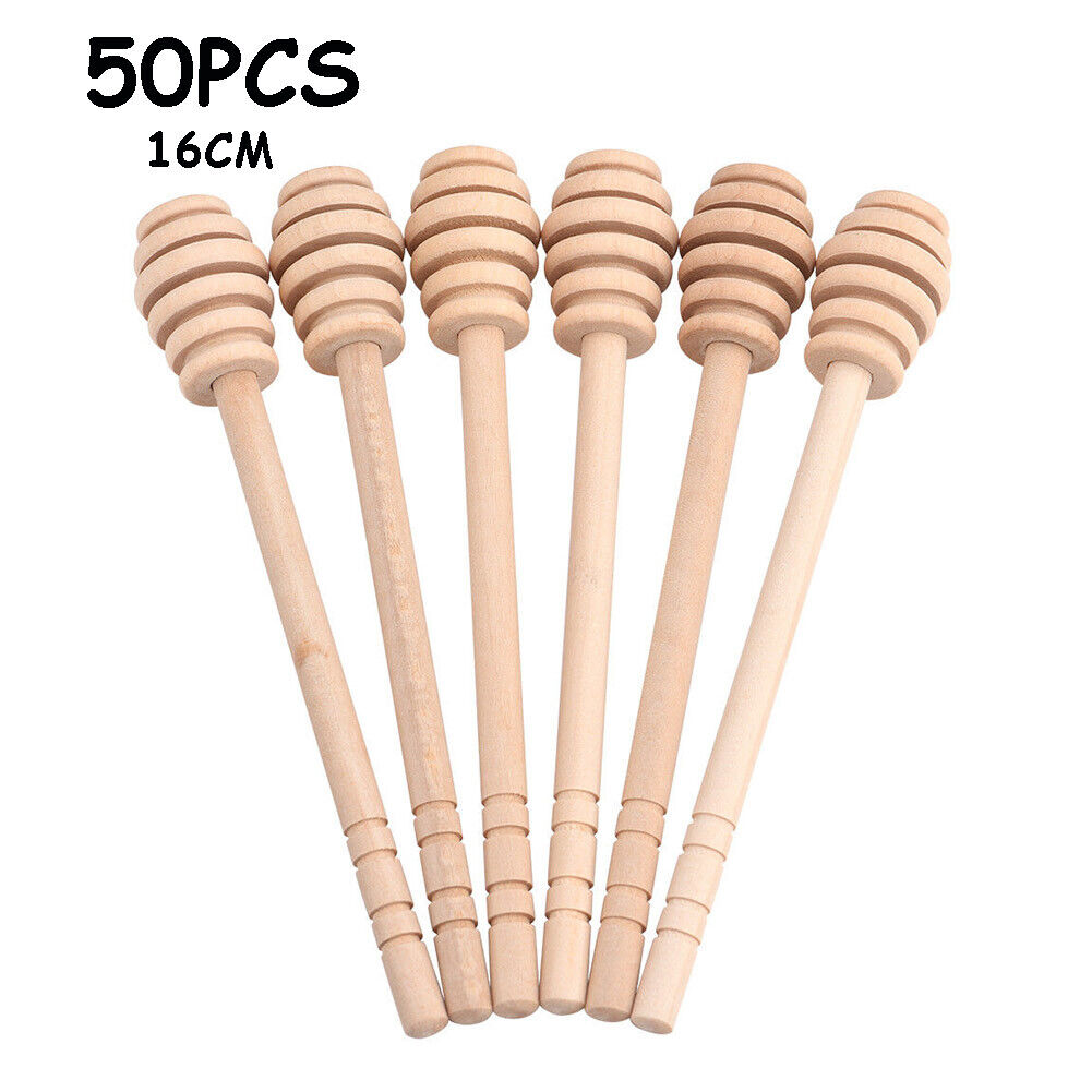 50Pcs Wood Jam Honey Dipper Jar Dispensing Collecting Stirring Rod Stick 16cm EC