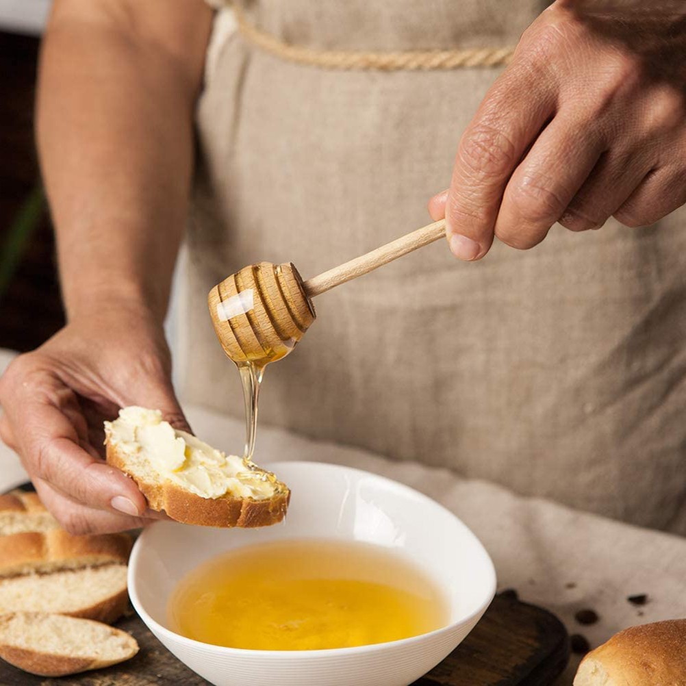 Honey Dipper Drizzler Spoon Syrup Wood Stick Wooden Pot Server Dripper