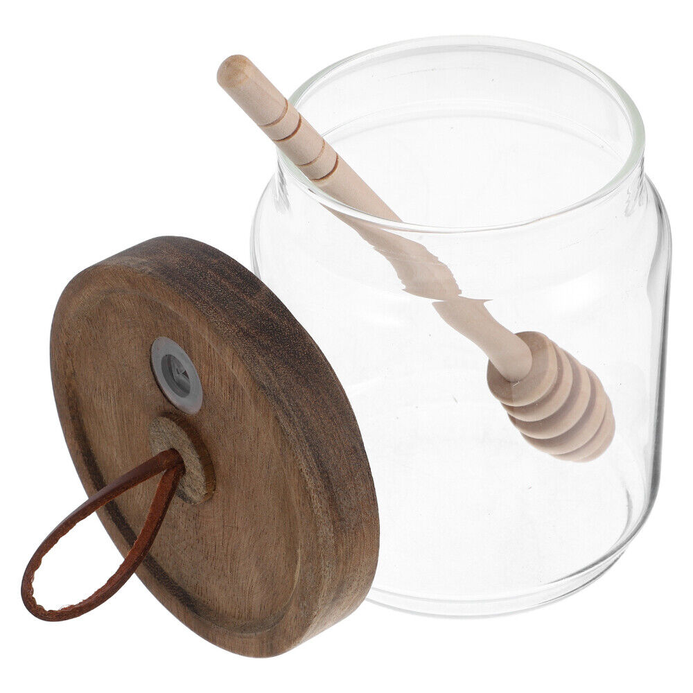 Glass Honey Jar With Wooden Lid And Dipper Honey Pot Airtight Syrup Containers