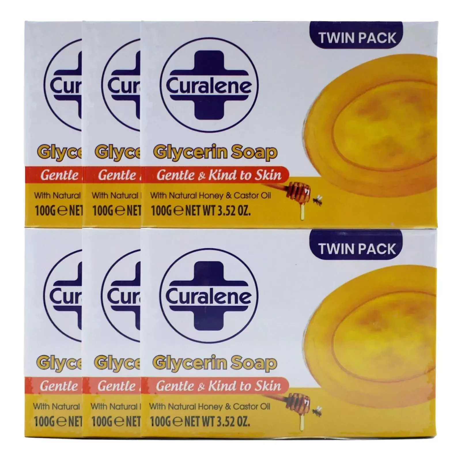 6 x Curalene Glycerine Bar Soap with Natural Honey & Oil (3 Twin Pack) 100 grams