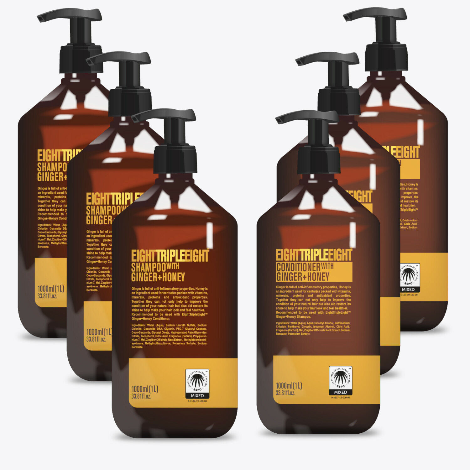 EightTripleEight Ginger + Honey Hair Care Set- 3x Shampoo & 3x Conditioner 1L