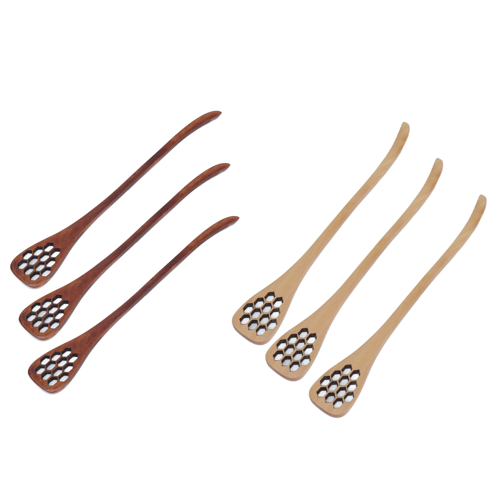 3Pcs Honey Dipper Reusable Wooden Carving Honey Spoon Mixing Stick For Home
