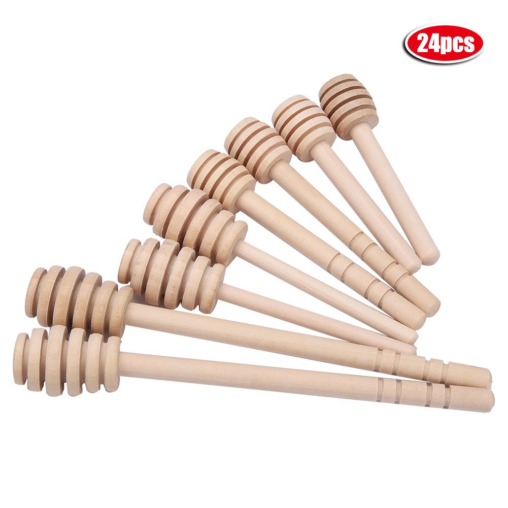 .›24Pcs Wooden Honey Dripper Stick Server Jam Syrup Drizzler Stirring Rod Kitche