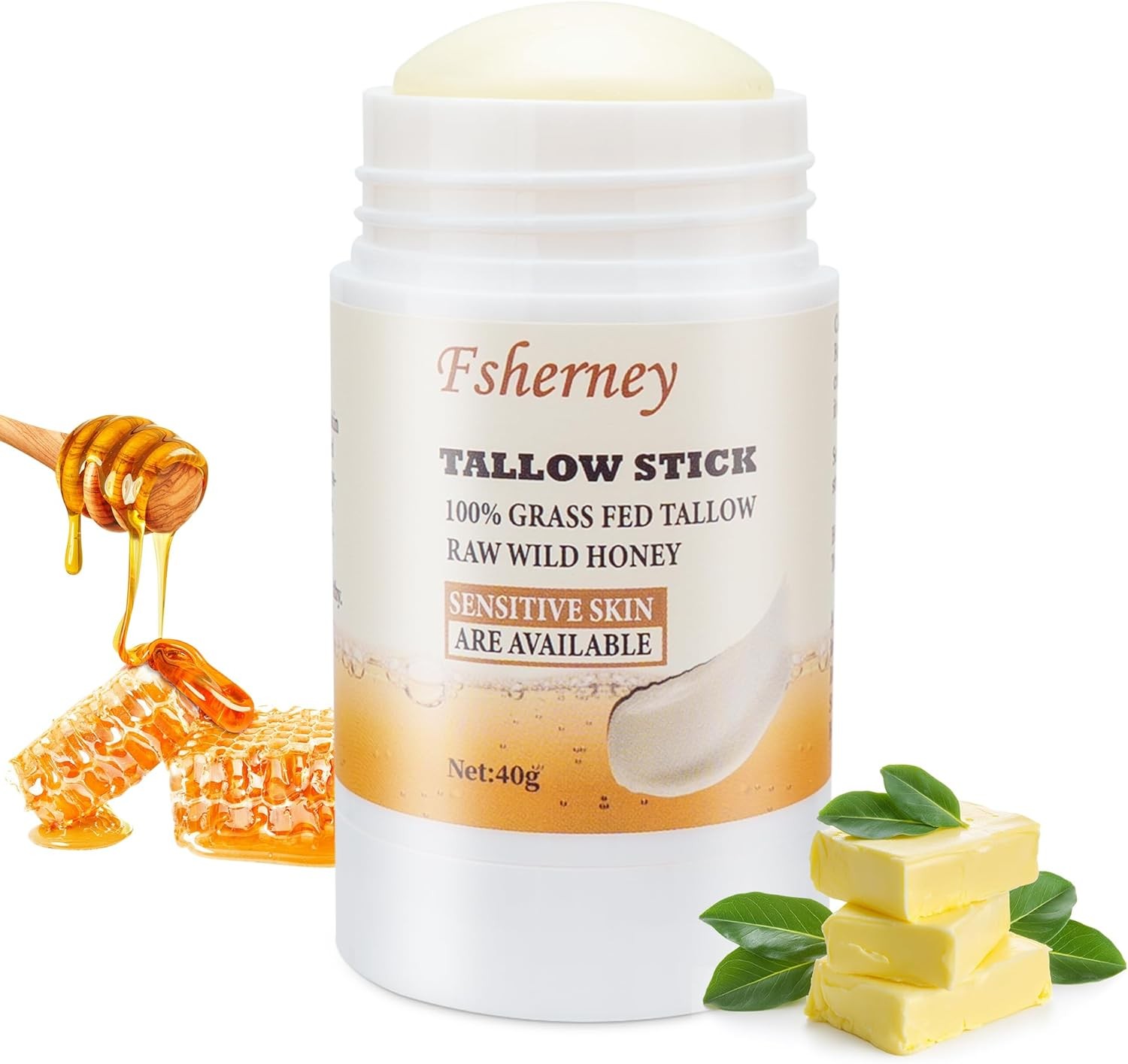 VRAIKO Fsherney Tallow and Honey Balm Stick, Grass-Fed Beef Tallow for Skin, Vi