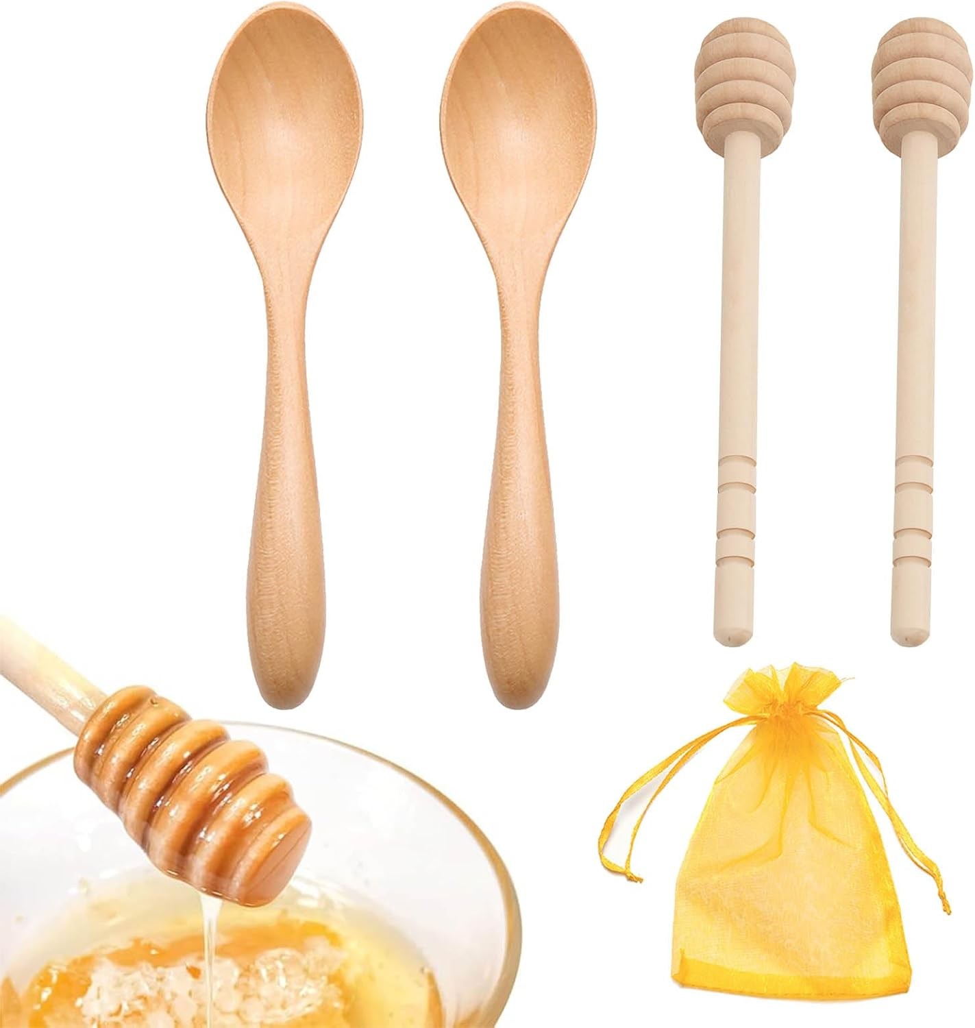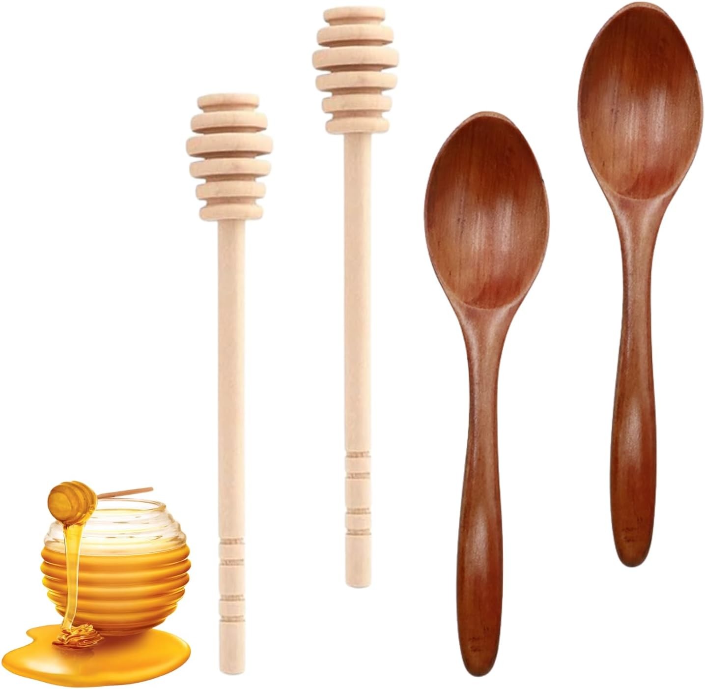 4 Pcs Honey Spoons Honey Stick Set, Handle Wooden Mixing Honey Spoon, Easy to C