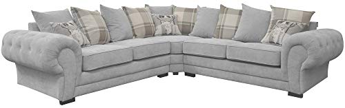 Corner Sofa Verona Fabric Grey Brown Cream Designer Scatter Cushions Living Room Furniture (Light Grey)