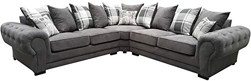 Corner Sofa Dorado Fabric Grey Brown Cream Designer Scatter Cushions Living Room Furniture (Grey)