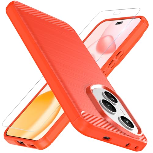 Osophter for Honor 400 PRO Case: with 1pcs Screen Protector Shock-Absorption Flexible TPU Rubber Protective Cell Phone Cover for Honour 400 PRO(UK-Red)