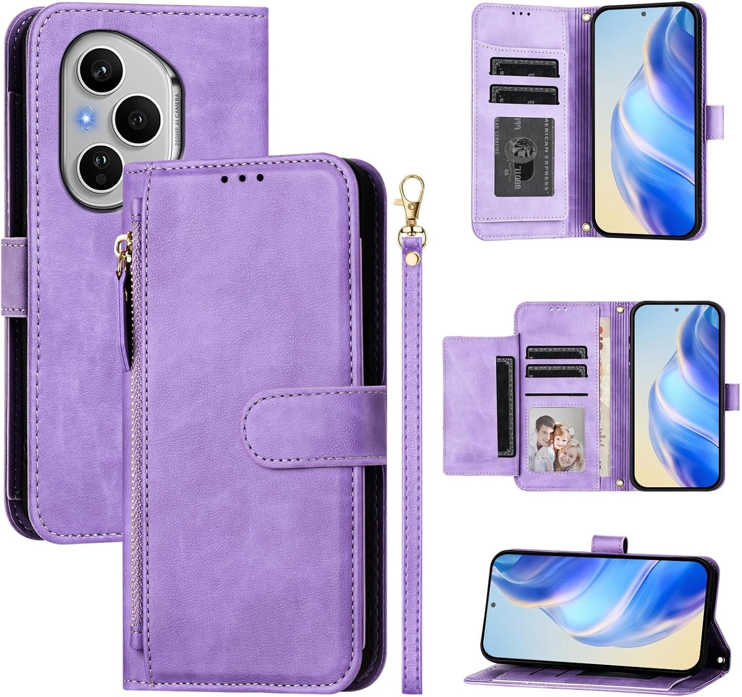 Unichthy For HONOR 400 Pro Zipper Case 7 Card Slots with Wrist Strap Shockproof