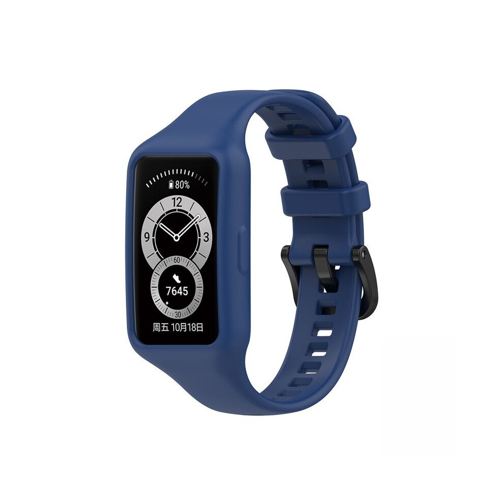 (Dark Blue) Sport Silicone Strap With Case For Huawei Honor Band 6 Case Full Cover Bracelet