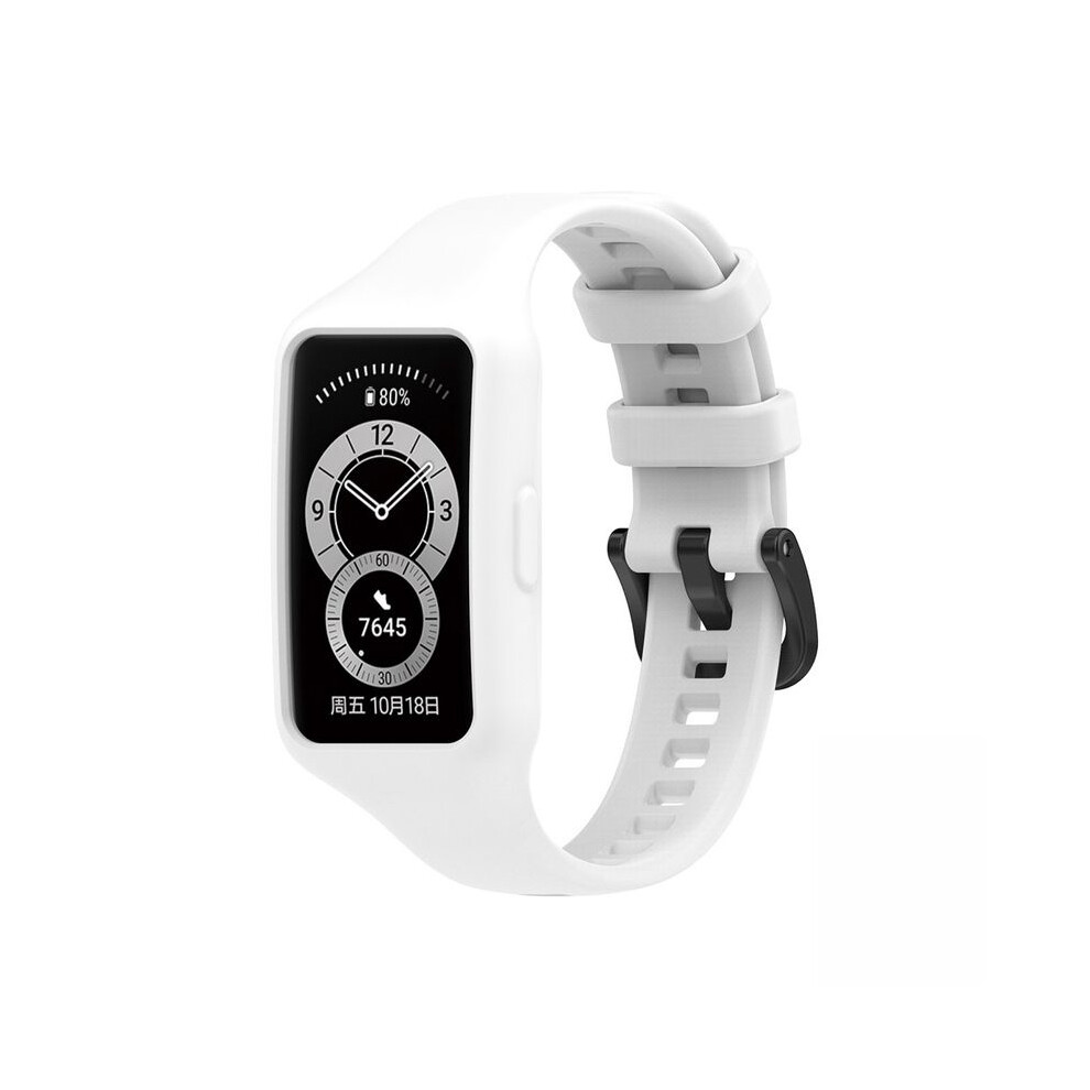 (White) Sport Silicone Strap With Case For Huawei Honor Band 6 Case Full Cover Bracelet