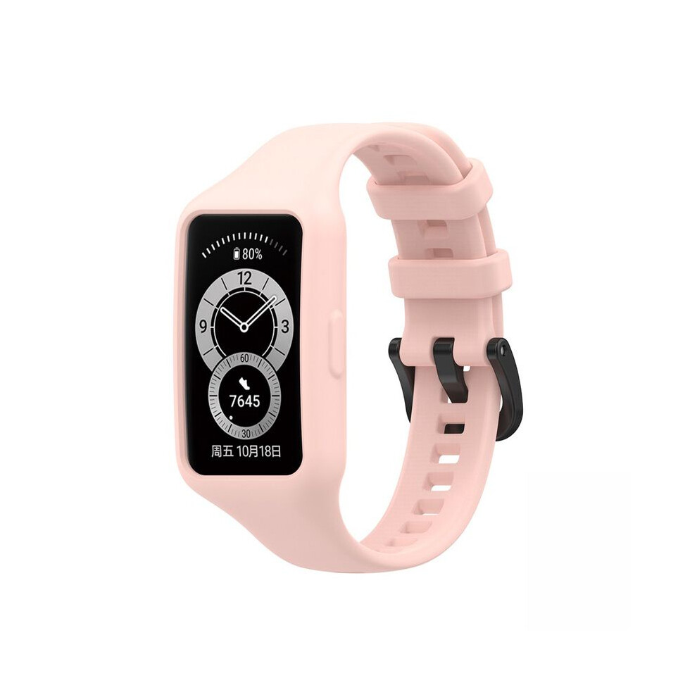 (Pink) Silicone Sport Strap With Case For Huawei Honor Band 6 Case Cover Bracelet Full