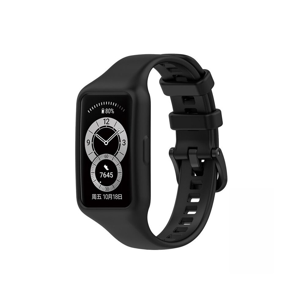(Black) Silicone Sport Strap With Case For Huawei Honor Band 6 Case Cover Bracelet Full