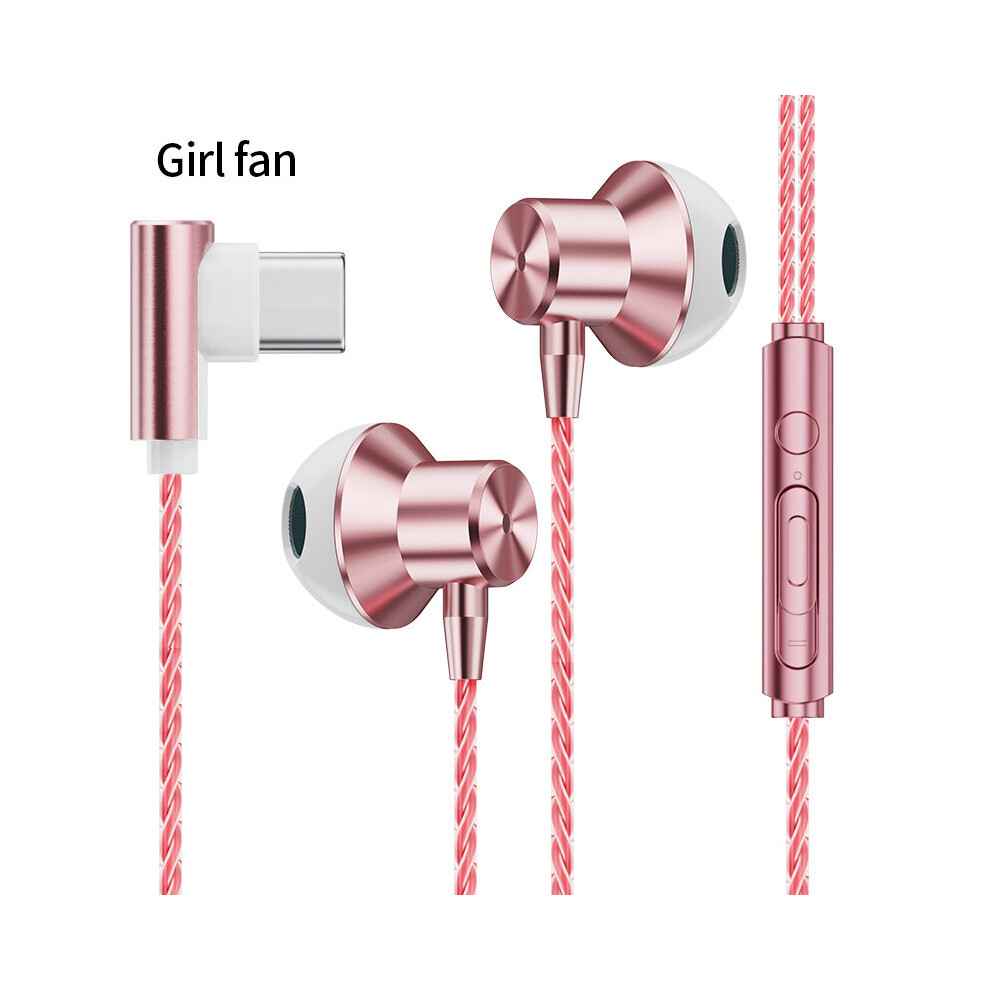 (a-TYPE-C Pink) Olaf Wired Earphones L-Bending Gaming Earbuds With Microphone Sport Music Headphones For Xiaomi Huawei Oppo Vivo Honor Nubia
