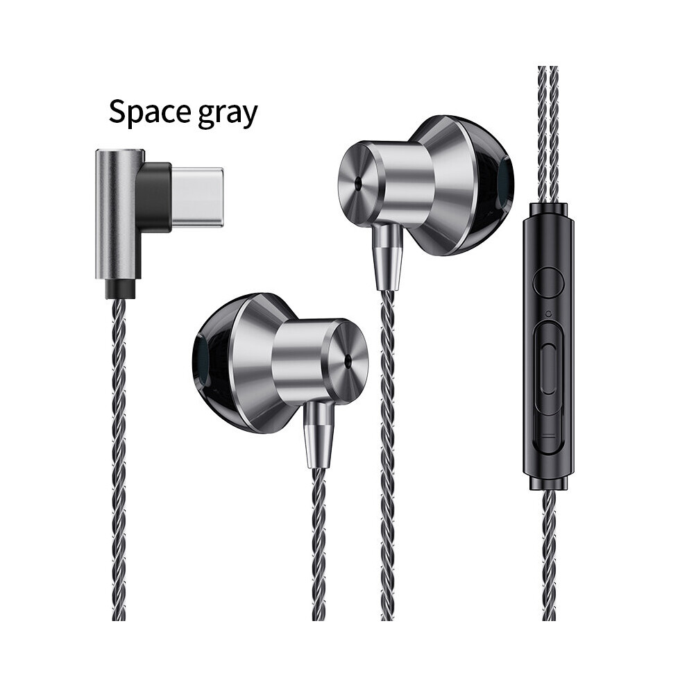 (a-TYPE-C Gray) Olaf Wired Earphones L-Bending Gaming Earbuds With Microphone Sport Music Headphones For Xiaomi Huawei Oppo Vivo Honor Nubia
