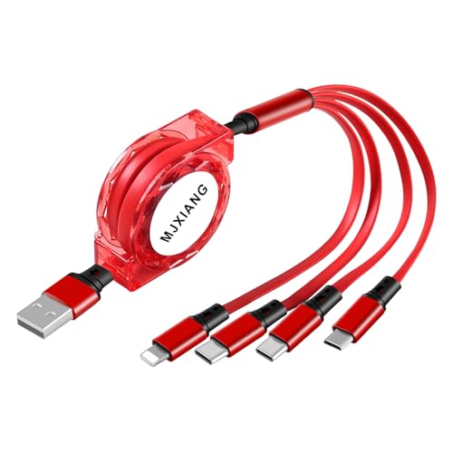 MJXIANG Multi Charging Cable 4 in 1, [3A 1M] Retractable USB Charger Cord with 2xType C iP Micro USB Connectors, for iPhone, iPad, Samsung Galaxy, LG, Sony, Honor View, Xiaomi, Moto, PS5, Oneplus