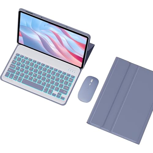 Keyboard Case for Honor Pad X9 11,5 Inch 2023, 7 Color Backlit Bluetooth Keyboard with Touchpad, Soft TPU Back Cover, Bluetooth Mouse, Purple