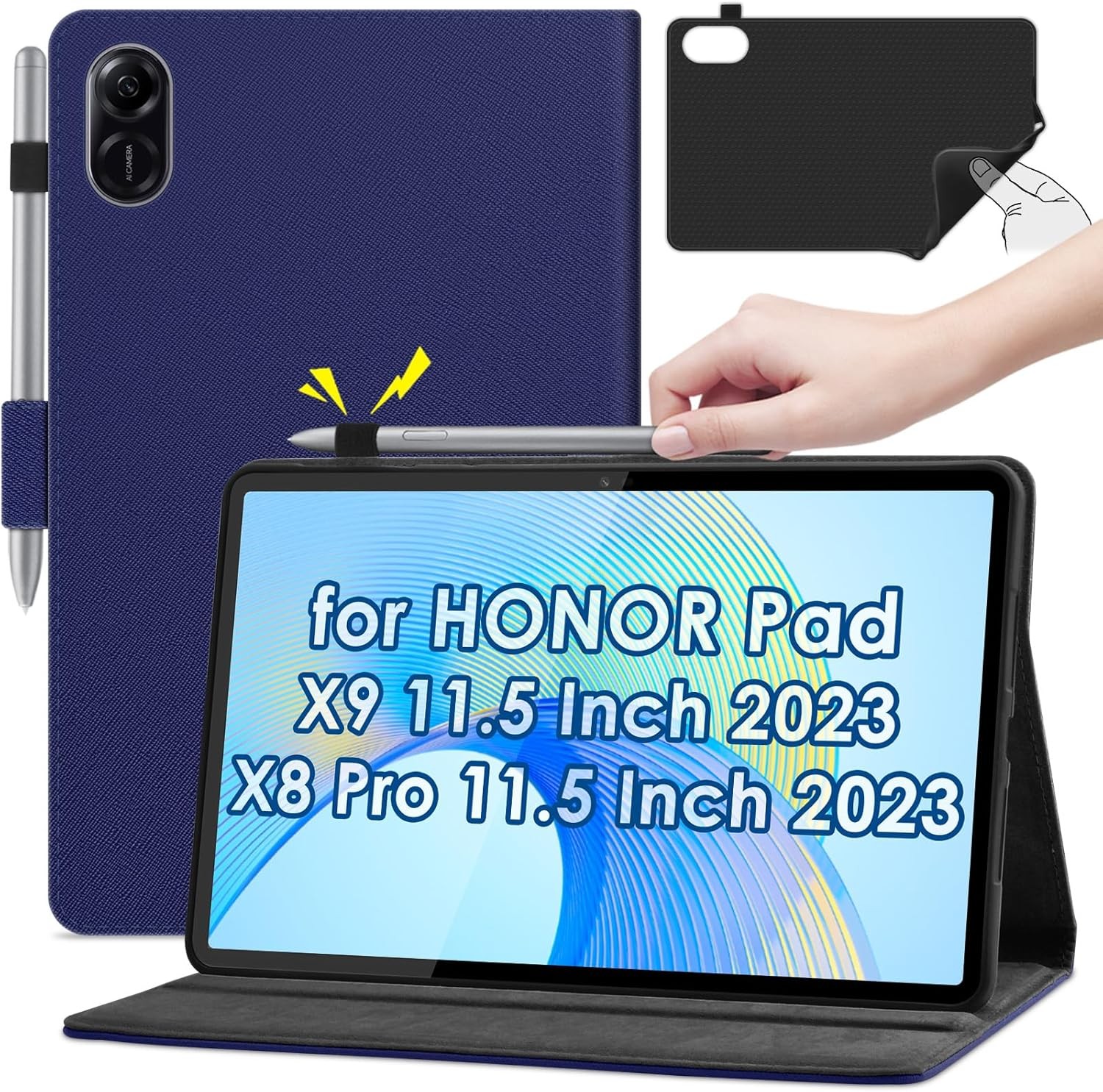 BOLELAW Case for Honor Pad X9 / Honor Pad X8 Pro 11.5 inch 2023 PU Leather Folio Flip Cover with Pen and Pen Holder, Card Slot Stand Functions Tablet Case for Honor Pad X9, Blue