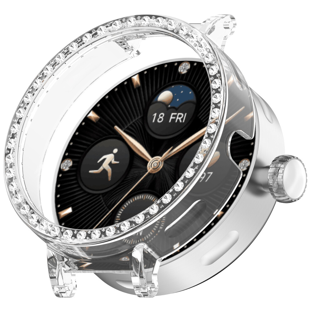 (Transparent) For Honor Choice SAGA Smart Watch 2 PC Case Rhinestone Decor Smartwatch Protective Cover