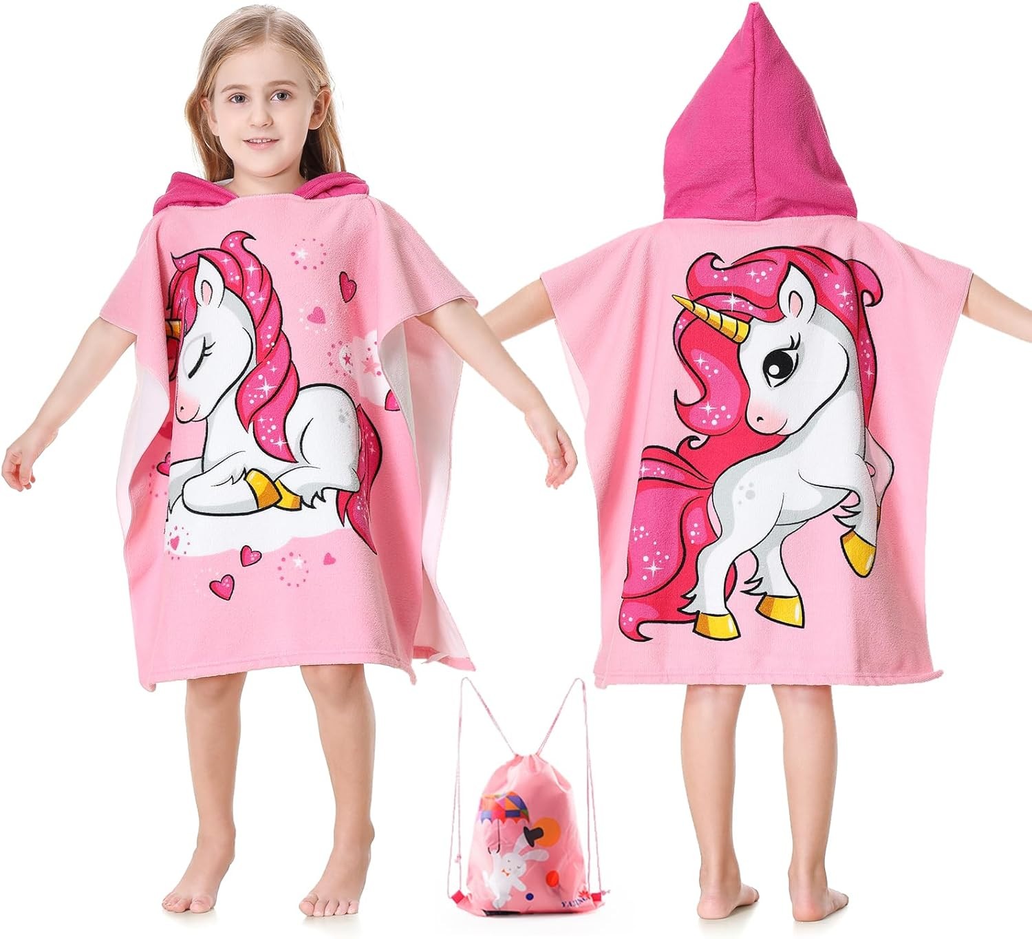Hooded Poncho Towels for Kids, Microfibre Ultra Soft Baby Beach Swimming Towels,