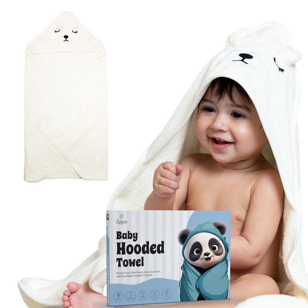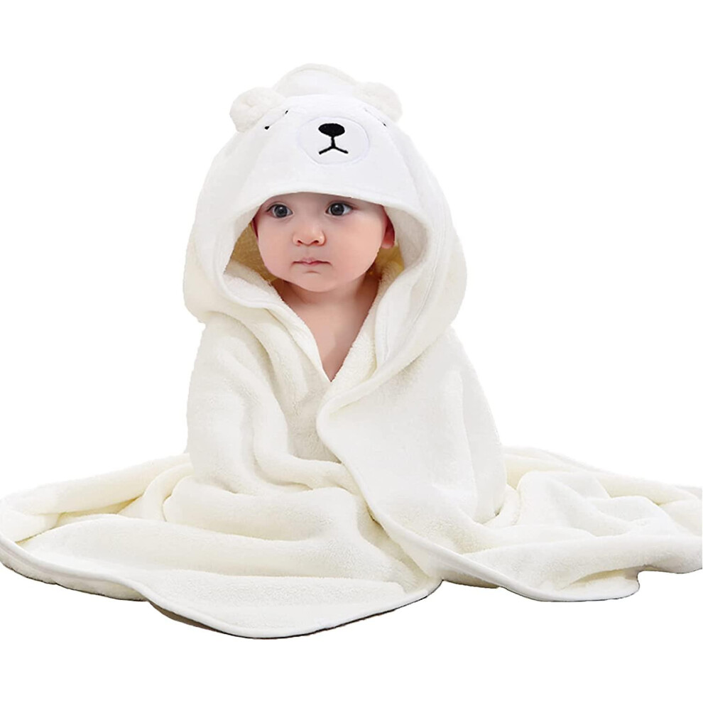 (White, One Size) Comfort Hooded Baby Towel, Durable Baby Bath Towels with Hood Ultra Soft Hooded Baby Towels Newborn, Animal Design Baby Shower Wash