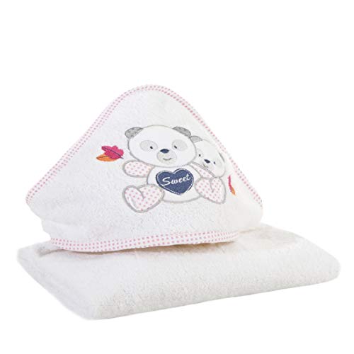 Design91 Baby Towel Hooded White Pink Towels Children's Towel Teddy Bear Teddy Girl Bathroom Soft Cute Cuddly 75 x 75 cm