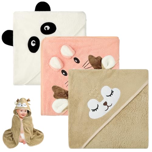 Aolso Hooded Baby Towel,3 PCs Baby Bath Towels with Hood,80x80cm Soft and Absorbent Hooded Towels for Kids Newborn and Infant, (White/Coffee/Pink)