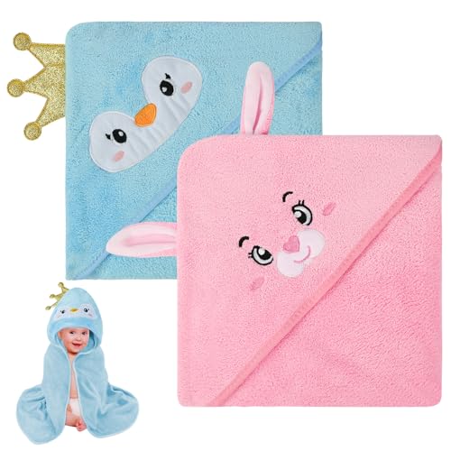 Aolso Hooded Baby Towel,2 PCs Baby Bath Towels with Hood,80x80cm Soft and Absorbent Hooded Towels for Kids Newborn and Infant, (Blue/Pink)