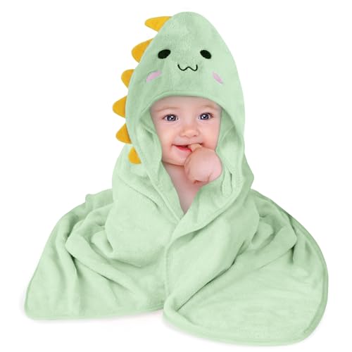 Aolso Hooded Baby Towel,Baby Bath Towels with Hood,80x80cm Soft and Absorbent Hooded Towels for Kids Newborn and Infant, (Green Dinosaur)